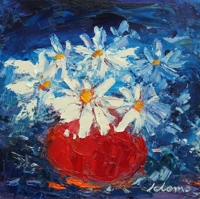 Red bowl white flowers 12x12 - John Lowrie Morrison