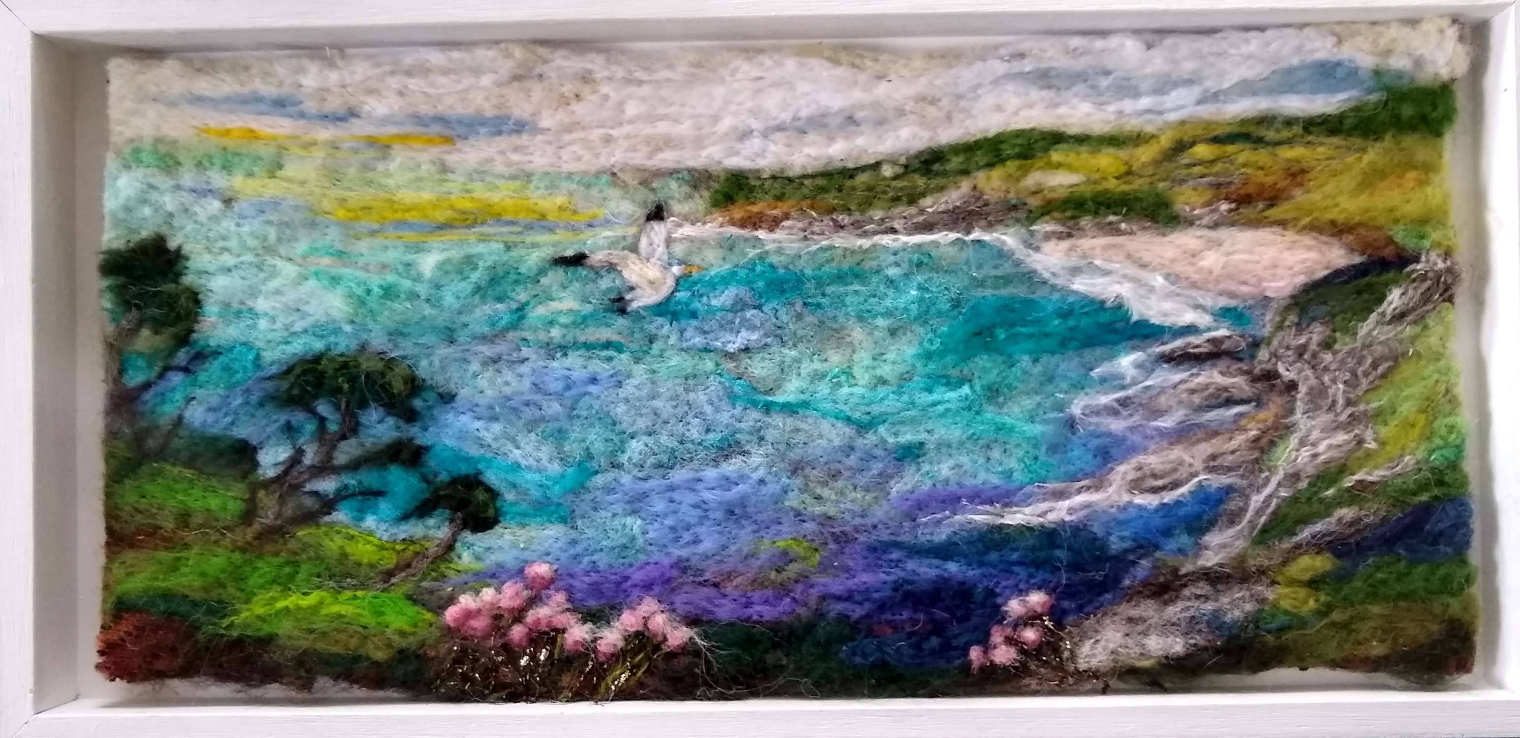 Online Exhibitions True Colours Online Previous Next Suzanne StobbsPink thrift along the Cornish coast Textile art Felted wools 30.5 x 61 cms (12.01 x 24.02 ins) Ref: 707950 £ 320.00 Enquire about this item Share: