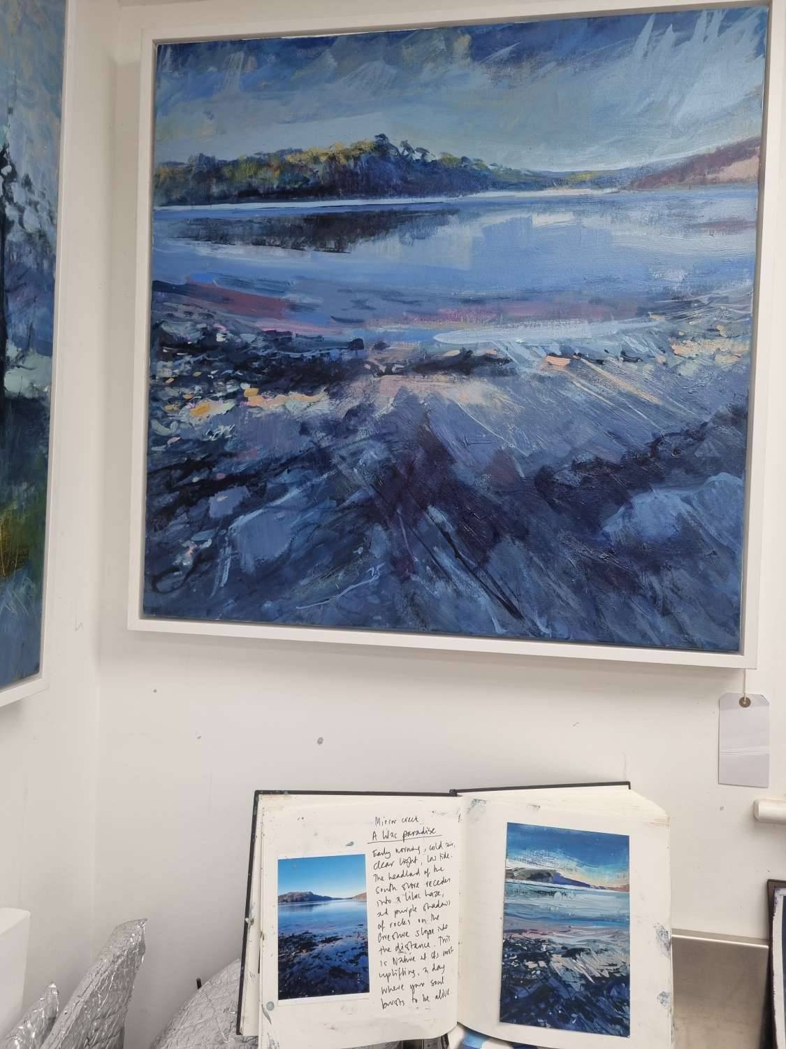 A lilac paradise. Early morning, cold air, clear light, low tide. The headland of the south shore recedes into a lilac blue haze, and purple shadows of rocks on the foreshore slope into the distance. This is Nature at her most uplifting, a day where your soul bursts to be alive.