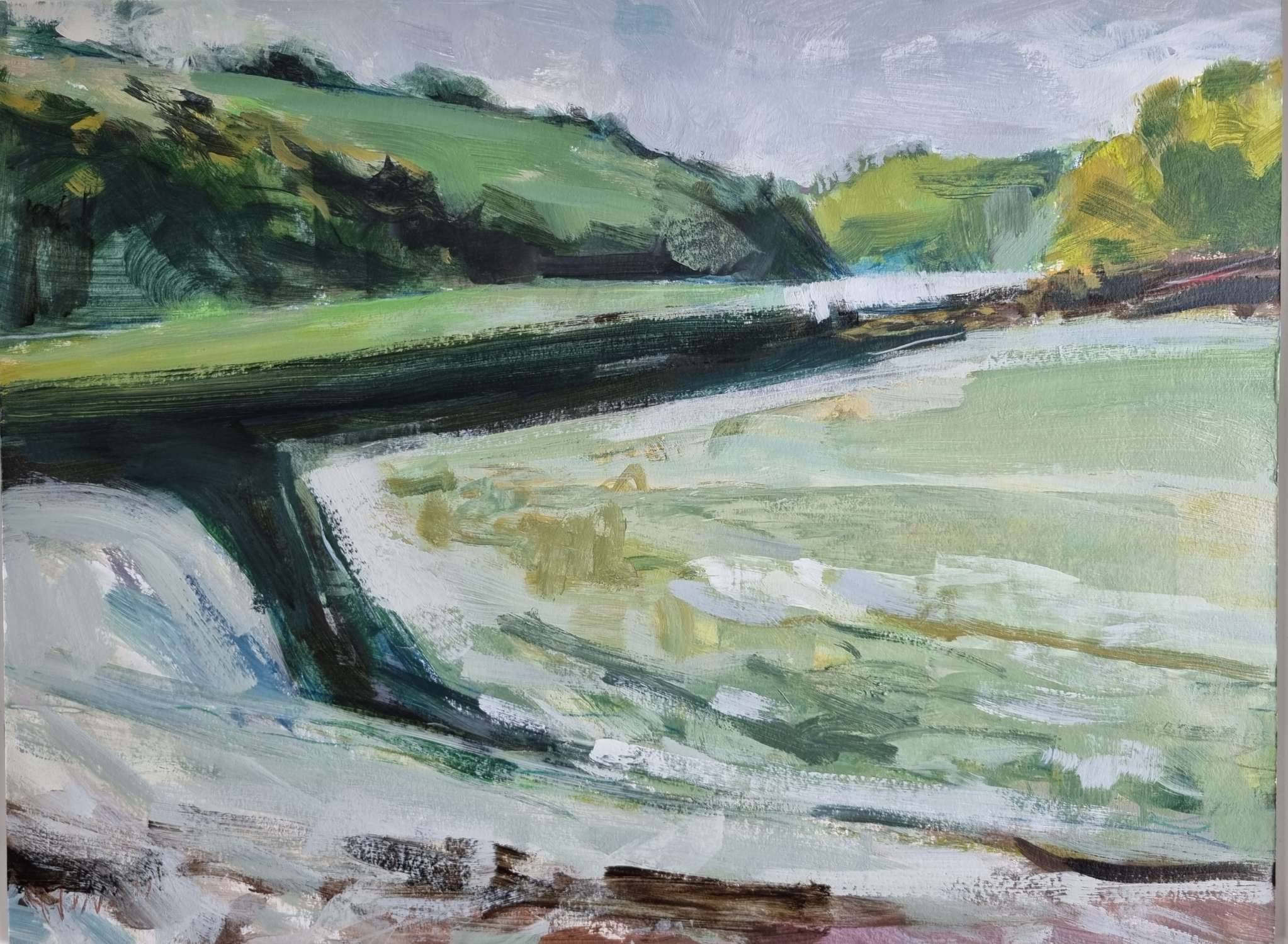 Calibri;mso-fareast-theme-font:minor-latin;mso-hansi-theme-font:minor-latin; mso-bidi-font-family:"Times New Roman";mso-bidi-theme-font:minor-bidi; mso-ansi-language:EN-GB;mso-fareast-language:EN-US;mso-bidi-language:AR-SA">Just me and the birds. An autumnal hue to the light, yellows picked out on the nearshore. The tide is ebbing fast, the deep grey green line is evaporating and changing shape. So still after all the wind, glassy wet river bed glistens through the weed. Perfect peace.