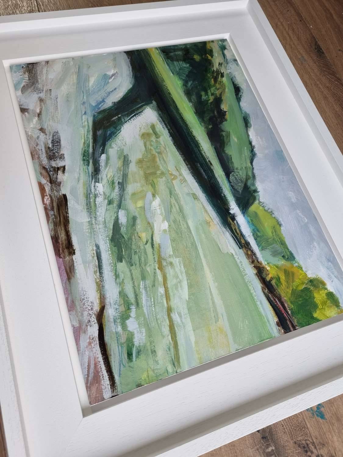 Framed in a white wood slab frame, overall size is 50.5 x 61cm.
