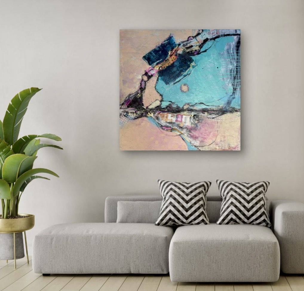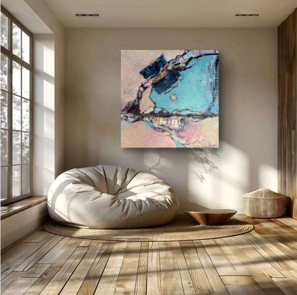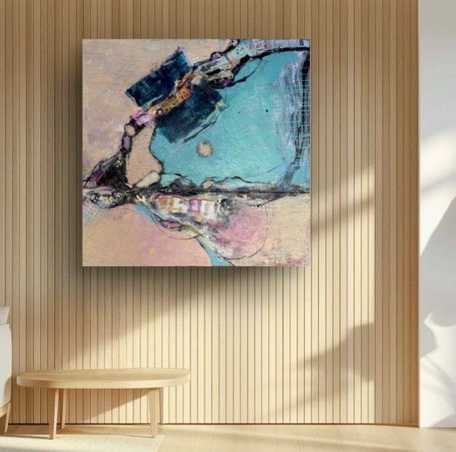 Aer #3/6 (2026), the third piece in this limited edition of six paintings, again using collage, acrylic and mixed media explores the marks left as the earth grows and evolves leaving forms and fissures engulfing man made objects whilst man make objects to work alongside the evolution - roads, railways, canals and settlements.